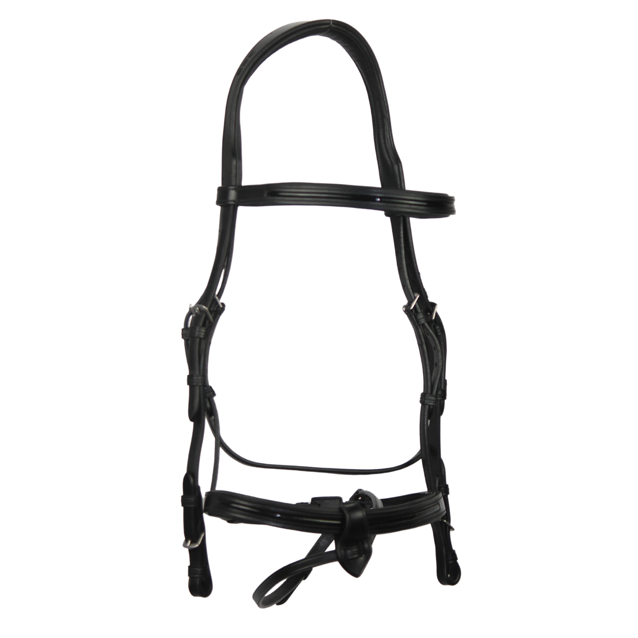 Pour allier confort et esthétique, ce bridon se distingue également par ses insertions en cuir verni élégamment placées sur le frontal et la muserole. Il est aussi disponible en finition veau, ce qui permet de choisir un style encore plus raffiné.